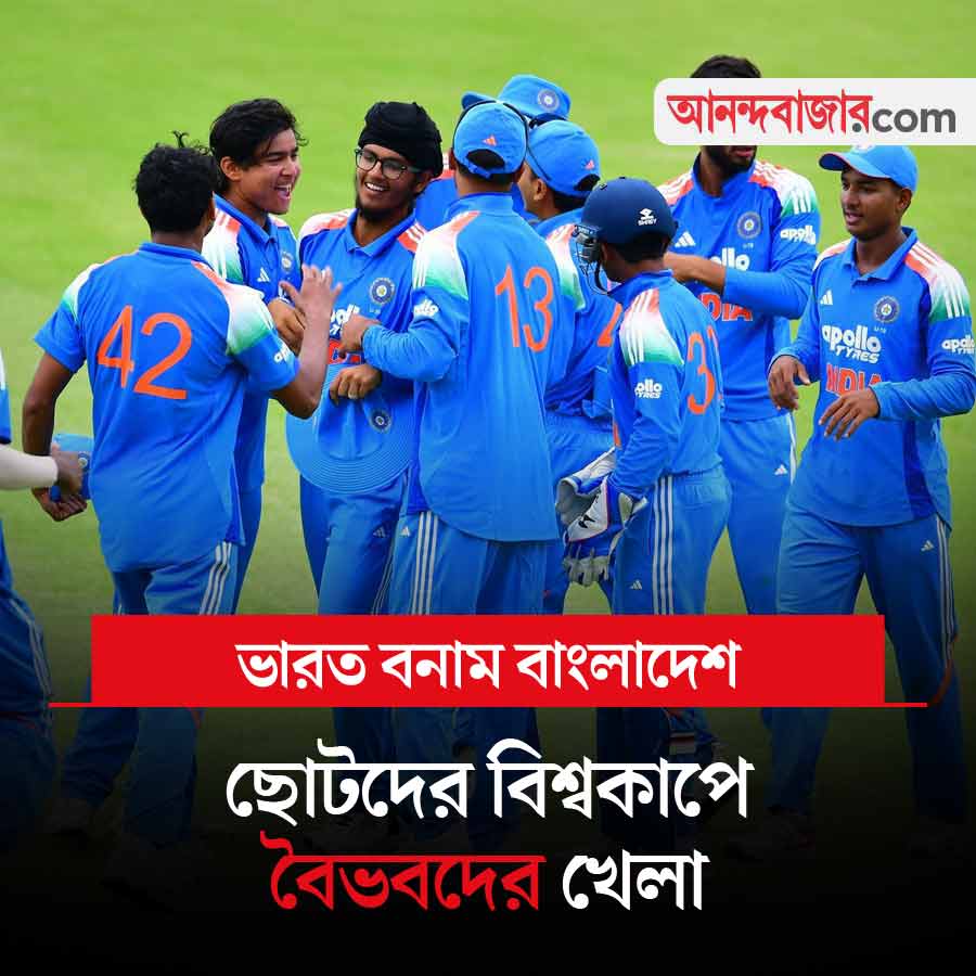 টি-টোয়েন্টি বিশ্বকাপে বাংলাদেশ ক্রিকেট দল ভারতে খেলতে আসবে কিনা তা এখনও জানা যায়নি। এই বিতর্কের মধ্যে ক্রিকেট মাঠে আজ প্রথম মুখোমুখি হচ্ছে দুই দেশ। অনূর্ধ্ব ১৯ বিশ্বকাপে লড়াই ভারত ও বাংলাদেশের। বৈভব সূর্যবংশীদের ম্যাচ কি বিতর্ক থেকে দূরে থাকতে পারবে? খেলা শুরু দুপুর ১টা থেকে। খেলা দেখা যাবে স্টার স্পোর্টস চ্যানেল ও জিয়োহটস্টার অ্যাপে।
