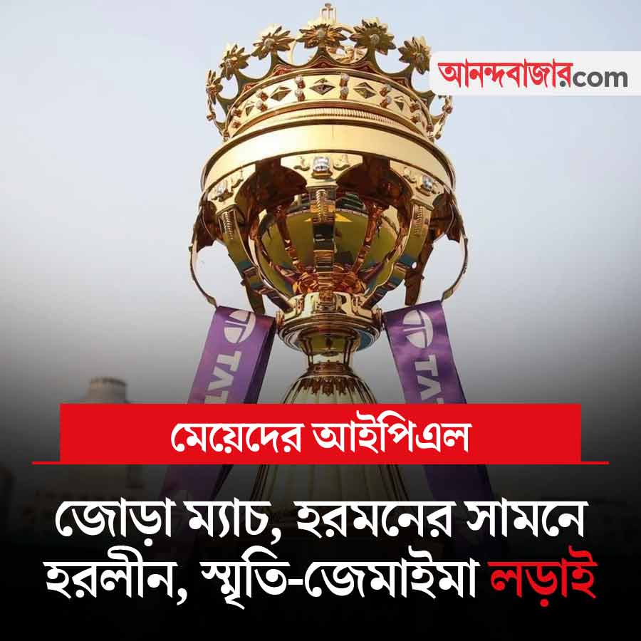 মেয়েদের আইপিএলে আজ আবার নামছে মুম্বই ইন্ডিয়ান্স। তাদের সামনে আরও এক বার ইউপি ওয়ারিয়র্স। গত ম্যাচে ইউপি-র কাছে হারতে হয়েছিল হরমনপ্রীত কৌরের মুম্বইকে। হরলীন দেওল একাই জিতিয়েছিলেন ইউপি-কে। আজ কি বদলা নিতে পারবে মুম্বই? এই ম্যাচ বিকেল ৩টে থেকে। আজ আরও একটি ম্যাচ রয়েছে। মুখোমুখি দিল্লি এবং বেঙ্গালুরু। অর্থাৎ লড়াই জেমাইমা রদ্রিগেজ় এবং স্মৃতি মন্ধানার। এই ম্যাচ সন্ধ্যা ৭:৩০ থেকে। খেলা দেখা যাবে স্টার স্পোর্টস চ্যানেল ও জিয়োহটস্টার অ্যাপে।