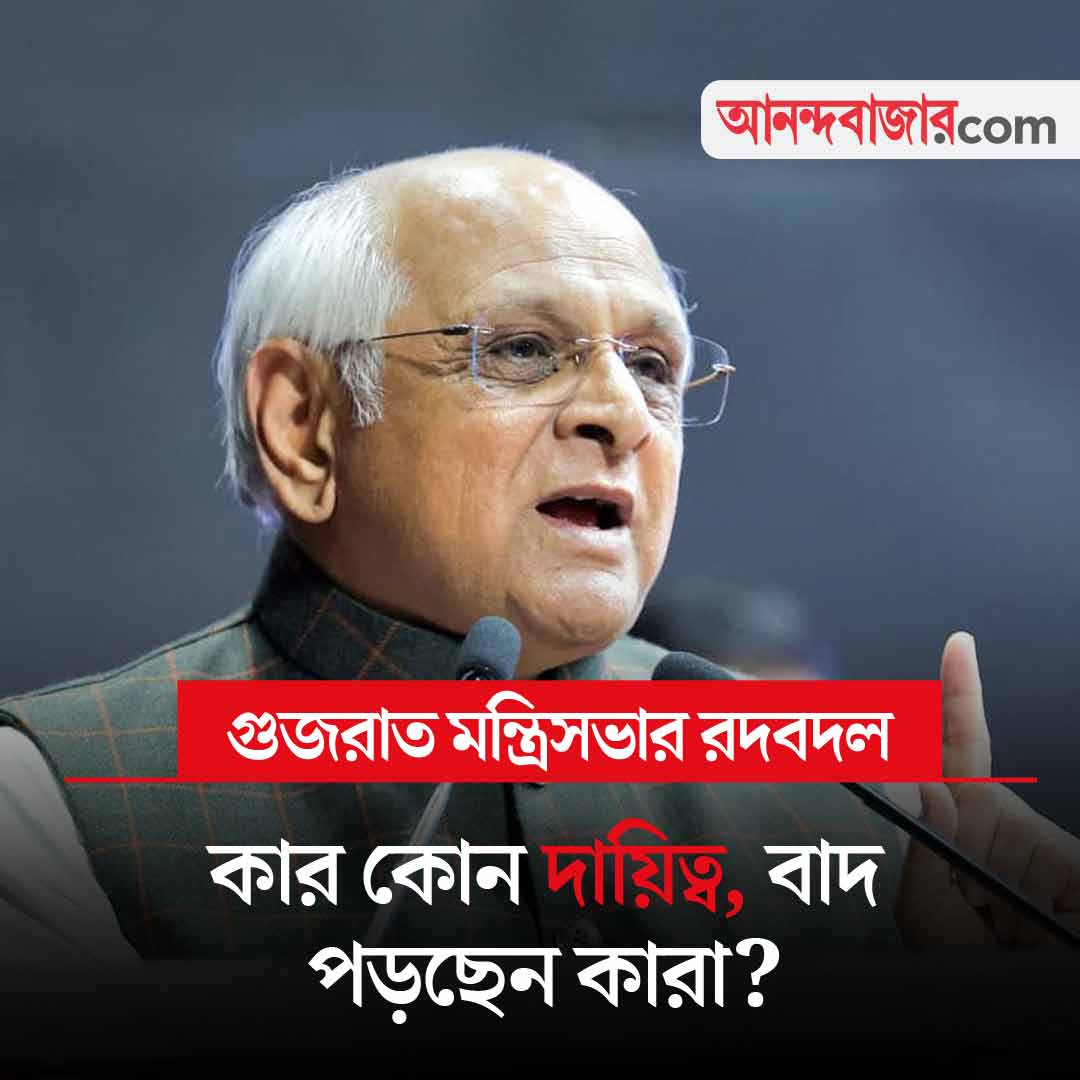 আজ রদবদল হওয়ার কথা রয়েছে গুজরাতের মন্ত্রিসভায়। বৃহস্পতিবার সে রাজ্যের ১৬ জন মন্ত্রীই (আট জন পূর্ণমন্ত্রী এবং আট জন প্রতিমন্ত্রী) মুখ্যমন্ত্রী ভূপেন্দ্র পটেলের কাছে ইস্তফাপত্র জমা দিয়েছেন। রাজ্য মন্ত্রিসভার খোলনলচে আমূল বদলানো হবে বলে বিজেপির একটি সূত্র জানাচ্ছে। সংবাদ সংস্থা এএনআই জানিয়েছে, শুক্রবার রাজধানী গান্ধীনগরে শপথ নিতে পারে নতুন মন্ত্রিসভা। ২০২৭ সালের শেষপর্বে গুজরাতে বিধানসভা ভোট হওয়ার কথা। তার আগে মন্ত্রিসভার রদবদলে কে কোন দায়িত্ব পান, মন্ত্রিসভা থেকে কে বাদ পড়েন, সে দিকে নজর থাকবে।