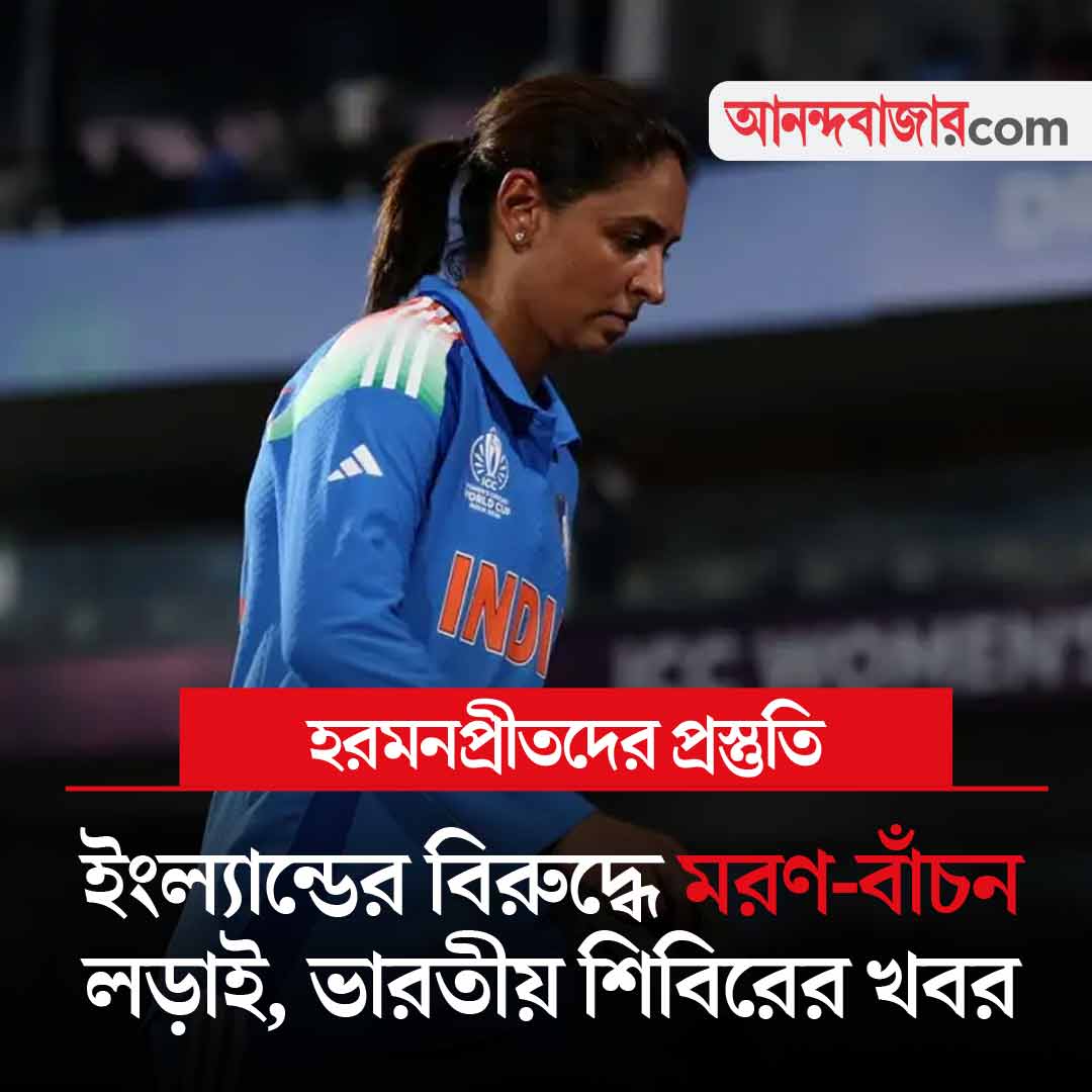 মহিলাদের বিশ্বকাপে রবিবার ভারতের মরণ-বাঁচন ম্যাচ। হরমনপ্রীত কৌরের ভারত খেলবে ইংল্যান্ডের সঙ্গে। এই ম্যাচে হারলেই ভারতের সেমিফাইনালে ওঠার আশা কঠিন হয়ে যাবে। তাকিয়ে থাকতে হবে অন্য দলের দিকে। এই ম্যাচের আগে ভারতীয় দলের খবর।