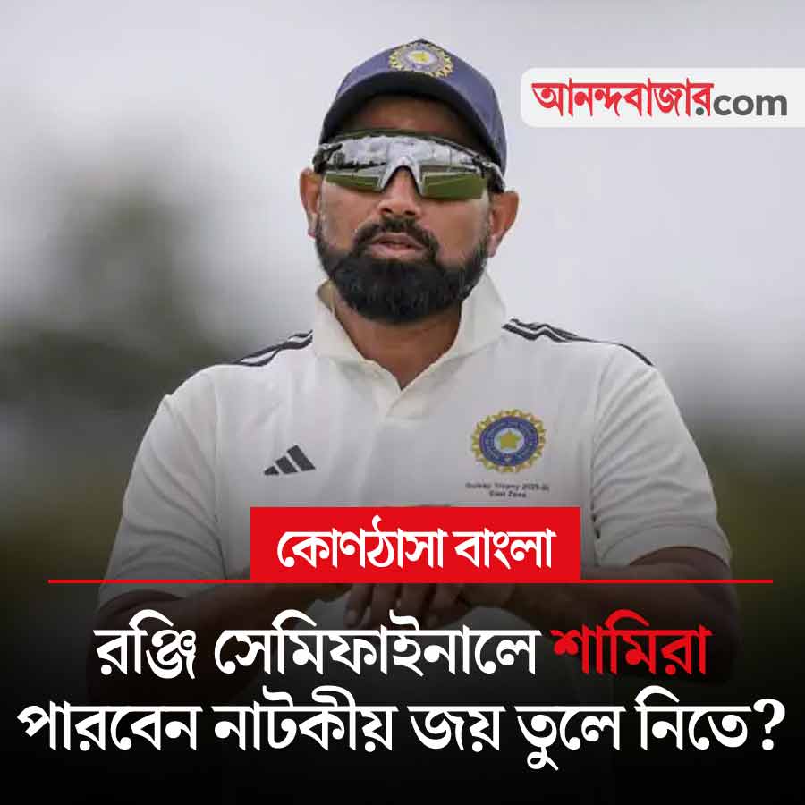 রঞ্জি ট্রফির সেমিফাইনালে ভাল জায়গায় থেকেও শেষ পর্যন্ত কোণঠাসা বাংলা। মহম্মদ শামি ৮ উইকেট নিলেও জম্মু ও কাশ্মীরের বিরুদ্ধে দ্বিতীয় ইনিংসে বাংলা ডুবল খারাপ ব্যাটিংয়ে। মাত্র ৯৯ রানে শেষ হয়ে যায় তাদের ইনিংস। ফলে আজ চতুর্থ দিন জিততে ৮৩ রান দরকার জম্মু ও কাশ্মীরের। হাতে ৮ উইকেট। বাংলা কি পারবে নাটকীয় জয় তুলে নিতে? খেলা শুরু সকাল ৯টা থেকে। অন্য সেমিফাইনালে উত্তরাখন্ডের বিরুদ্ধে ৭৩৬ রানের পাহাড় গড়েছে কর্নাটক। তৃতীয় দিনের শেষে উত্তরাখন্ড ৫ উইকেটে ১৪৯ রান তুলেছে। এই ম্যাচ সকাল ৯:৩০ থেকে। খেলা দেখা যাবে স্টার স্পোর্টস চ্যানেল ও জিয়োহটস্টার অ্যাপে।