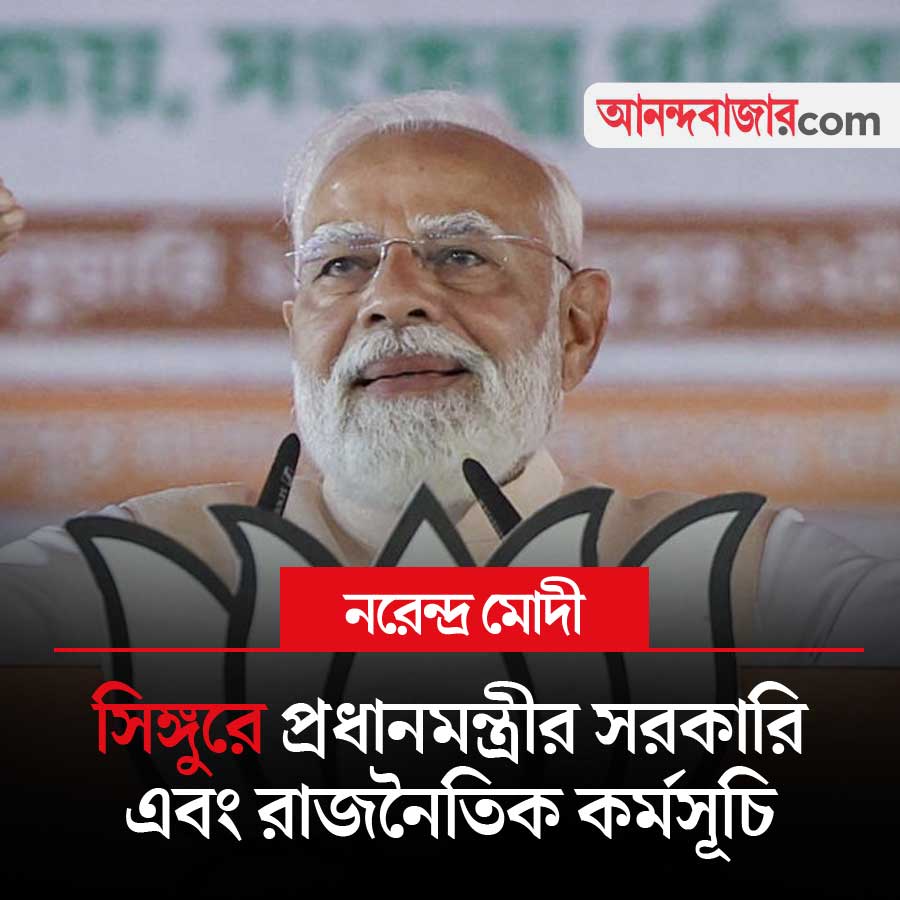 আজ হুগলির সিঙ্গুরে আসছেন প্রধানমন্ত্রী নরেন্দ্র মোদী। সেখানে তাঁর প্রশাসনিক সভার পাশাপাশি রয়েছে রাজনৈতিক সভাও। একগুচ্ছ প্রকল্পের উদ্বোধন করার কথা তাঁর। পৌনে ৩টে নাগাদ তাঁর প্রশাসনিক সভা শুরুর কথা রয়েছে। সেখানে উন্নয়নমূলক প্রকল্পের জন্য প্রায় ৮৩০ কোটি টাকার শিলান্যাস করার কথা মোদীর। এ ছাড়াও, প্রধানমন্ত্রী সিঙ্গুরের বালাগড়ে এক্সটেন্ডেড পোর্ট গেট সিস্টেমের শিলান্যাস করবেন। পাশাপাশি, শিলান্যাস করবেন জলপথ পরিবহণ টার্মিনাল এবং একটি রেল ওভারব্রিজও। তাঁর উদ্বোধন করার কথা জয়রামবাটী–বড়গোপীনাথপুর–ময়নাপুর নতুন রেললাইনের। এই রেললাইনটি তারকেশ্বর–বিষ্ণুপুর নতুন রেললাইন প্রকল্পের একটি অত্যন্ত গুরুত্বপূর্ণ অংশ। এই নতুন সংযোগের ফলে বাঁকুড়া ও হুগলি জেলার মধ্যে যাতায়াত ব্যবস্থা আরও সহজ হবে এবং স্থানীয় বাসিন্দাদের দীর্ঘ দিনের দাবি পূরণ হবে। সাড়ে ৩টে নাগাদ সিঙ্গুরে জনসভা করবেন মোদী। আজ আরও তিনটি অমৃত ভারত এক্সপ্রেসের সূচনা করার কথা রয়েছে তাঁর।