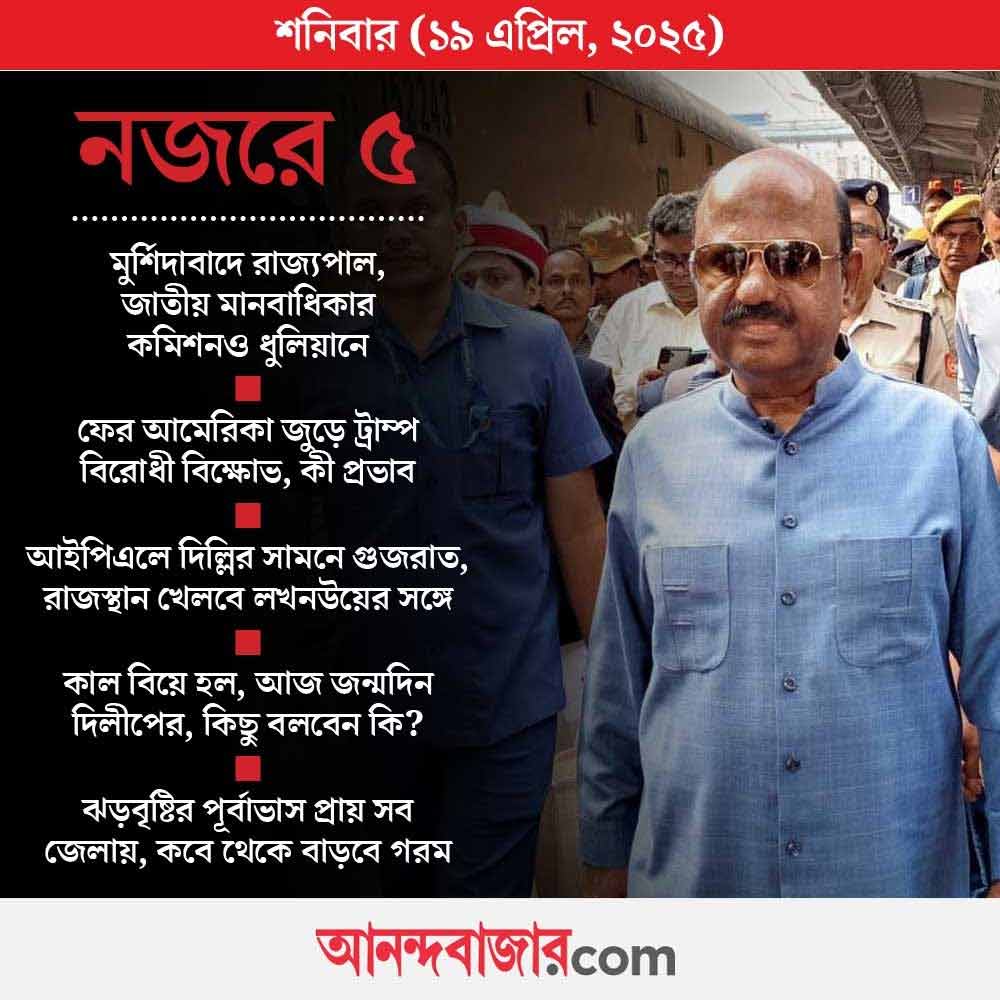 আজ মুর্শিদাবাদে রাজ্যপাল সিভি আনন্দ বোস। রাজ্যপাল ছাড়াও এই জেলার হিংসাকবলিত এলাকা পরিদর্শনে যাওয়ার কথা জাতীয় মানবাধিকার কমিশন এবং জাতীয় মহিলা কমিশনের সদস্যদের। মুর্শিদাবাদে অশান্তির জেরে বাড়ি ছেড়ে অনেকেই পাশের জেলা মালদহে আশ্রয় নিয়েছেন। ঘরছাড়াদের একাংশ আশ্রয় নিয়েছেন বৈষ্ণবনগরের পারলালপুর হাই স্কুলে। শুক্রবার সেই আশ্রয়শিবিরে যায় জাতীয় মানবাধিকার কমিশনের প্রতিনিধিদল। সদস্যেরা কথা বলেন ঘরছাড়া পরিবারদের সঙ্গে। বিকেলে সেই আশ্রয়শিবিরে যান রাজ্যপালও। তবে তিনি সেখানে পৌঁছতেই পরিস্থিতি নিয়ন্ত্রণের বাইরে চলে যায়। তিনি যখন শিবিরের ভেতরে ঘরছাড়াদের সঙ্গে কথা বলছিলেন, বাইরে তখন দফায় দফায় বিক্ষোভ দেখান স্থানীয়দের একাংশ। পরিস্থিতি সামাল দিতে নামাতে হয় র্যাফও। আশ্রয়শিবির ঘুরে রাজ্যপাল যান ফরাক্কার গঙ্গাভবন গেস্ট হাউসে। সেখানেই রাতে ছিলেন তিনি। আজ তিনি মুর্শিদাবাদের কোথায় কোথায় যান, নজর থাকবে সেই খবরের দিকে।