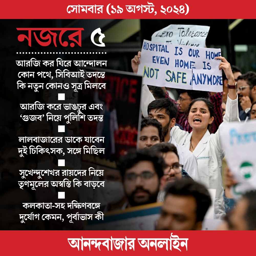 আরজি করের সেমিনার রুমে মহিলা চিকিৎসককে ধর্ষণ করে খুনের ঘটনার সিবিআই তদন্ত পাঁচ দিন অতিক্রম করেছে। কেন্দ্রীয় তদন্তকারী সংস্থার তরফে এখনও নতুন কোনও তথ্য বা সূত্র সামনে আসেনি। অন্য দিকে, ক্রমশ জটিল হচ্ছে আরজি করের বাইরের পরিস্থিতি। মেয়েদের রাত দখলের পর, গতকাল মোহনবাগান-ইস্টবেঙ্গল সমর্থকদের একাংশের বিক্ষোভে দীর্ঘ ক্ষণ অচল ছিল ইএম বাইপাস। পথে নেমেছিলেন টালিগঞ্জের শিল্পীরাও। তবে বাইরের আন্দোলনের সঙ্গে শাসকদল ত়ৃণমূল তথা মুখ্যমন্ত্রী মমতা বন্দ্যোপাধ্যায়ের অস্বস্তির কারণ হয়ে উঠেছে দলের ভিতর থেকে উঠে আসা নানান প্রকাশ্য মন্তব্য। সর্বশেষ সংযোজন: প্রবীণ সাংসদ সুখেন্দুশেখরের পোস্ট, যেখানে তিনি কলকাতার পুলিশ কমিশনার বিনীত গোয়েলকে হেফাজতে নিয়ে সিবিআই জেরার দাবি তুলেছেন। সব পক্ষই অবশ্য এখন একদিকেই তাকিয়ে। সিবিআই তদন্ত কী বলবে।