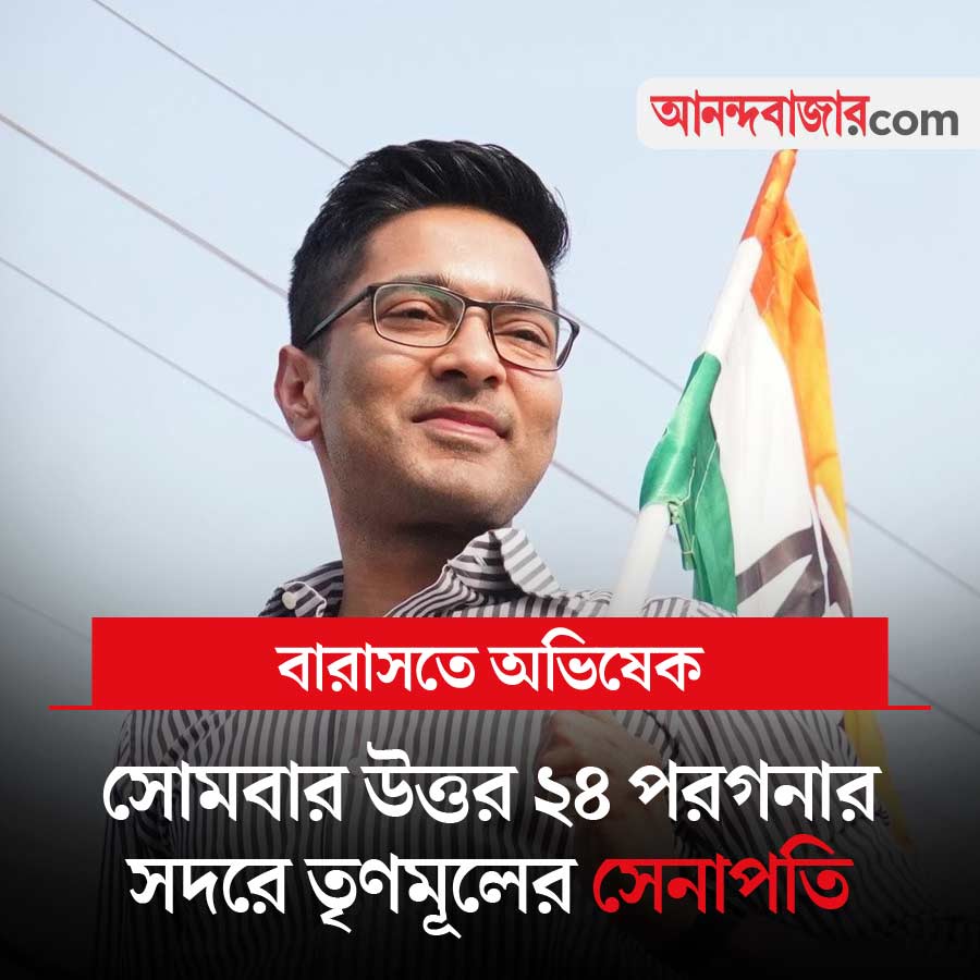 আবার জিতবে বাংলা কর্মসূচি নিয়ে এ বার অভিষেক বন্দ্যোপাধ্যায়ের গন্তব্য উত্তর ২৪ পরগনা জেলার বারাসত। সোমবার সপ্তাহের প্রথম দিনেই উত্তর ২৪ পরগনা জেলার সদর শহরে রাজনৈতিক কর্মসূচি করবেন তৃণমূলের সর্বভারতীয় সাধারণ সম্পাদক। আগামী বিধানসভা নির্বাচনের আগে মুখ্যমন্ত্রী মমতা বন্দ্যোপাধ্যায়ের সরকার গত ১৫ বছরে কী কী উন্নয়নমূলক কাজ করেছে, তা তুলে ধরে প্রচার চালাচ্ছেন তিনি। সেই লক্ষ্যেই বারাসতে রাজনৈতিক কর্মসূচি সাজিয়েছে তৃণমূল।