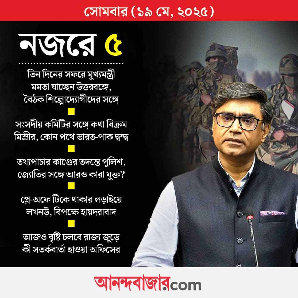 ‘অপারেশন সিঁদুর’ অভিযান এবং সন্ত্রাসবাদের বিরুদ্ধে ভারতের বার্তা নিয়ে দেশে দেশে ঘুরবে কেন্দ্রীয় সরকারের তৈরি সাতটি সর্বদলীয় প্রতিনিধিদল। শাসক এবং বিরোধী শিবিরের সাংসদ এবং কয়েক জন কূটনীতিককে নিয়ে তৈরি সাত দলে মোট ৫৯ জন সদস্য রয়েছেন। মোট ৩২টি দেশে ঘুরবেন তাঁরা। এরই মধ্যে আজ বিদেশনীতি বিষয়ক সংসদীয় কমিটির সঙ্গে আলোচনায় বসছেন বিদেশ সচিব বিক্রম মিস্রী। ‘অপারেশন সিঁদুর’ এবং সংঘর্ষবিরতি পরবর্তী পরিস্থিতি এবং ভারত-পাক দ্বন্দ্ব নিয়ে বৈঠকে আলোচনা হতে পারে। আমেরিকার প্রেসিডেন্ট ডোনাল্ড ট্রাম্প সম্প্রতি ভারত-পাক সংঘর্ষবিরতি নিয়ে কিছু মন্তব্য করেছেন। সেই প্রসঙ্গও বৈঠকে উঠে আসে কি না, সে দিকে নজর থাকবে।