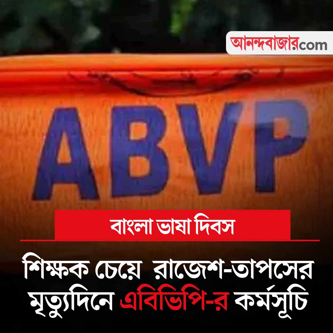 আজ রাজ্য জুড়ে ‘বাংলা ভাষা দিবস’ পালন করবে সঙ্ঘ পরিবারের ছাত্র সংগঠন অখিল ভারতীয় বিদ্যার্থী পরিষদ (এবিভিপি)। ২০১৮ সালের ২০ সেপ্টেম্বর উত্তর দিনাজপুরের দাঁড়িভিটের স্কুলে বাংলা ভাষার শিক্ষক নিয়োগের দাবিতে আন্দোলন হয়েছিল। তার জেরে পুলিশের সঙ্গে ছাত্রদের সংঘর্ষও হয়। সে দিনের ঘটনায় রাজেশ সরকার ও তাপস বর্মণ নামে দুই ছাত্রের মৃত্যু হয়। এবিভিপির তরফ থেকে ঘোষণা করা হয়েছে যে, রাজেশ-তাপস বাংলা ভাষার জন্য প্রাণ দিয়েছিল, তাই তাদের মৃত্যুদিনকে ‘বাংলা ভাষা দিবস’ হিসেবে এ বছর গোটা রাজ্যে পালন করা হবে।