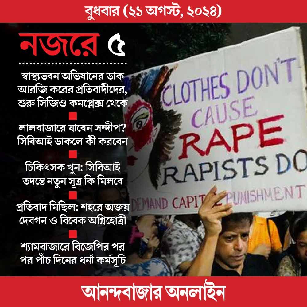 রোজকার মতো মঙ্গলবারও সিজিও কমপ্লেক্সে প্রবেশের সময় এড়িয়ে গিয়েছিলেন সাংবাদিকদের প্রশ্ন। পঞ্চম বার কেন্দ্রীয় আধিকারিকদের তলবে গতকাল সিবিআই দফতরে গিয়েছিলেন আরজি কর মেডিক্যাল কলেজের প্রাক্তন অধ্যক্ষ সন্দীপ। মঙ্গলবার আরজি করের এক স্বাস্থ্যকর্মীকেও জিজ্ঞাসাবাদ করেছে সিবিআই। চিকিৎসক ধর্ষণ-খুনে গ্রেফতার হওয়া সেই সিভিক ভলান্টিয়ারের ‘ঘনিষ্ঠ’ এক এএসআইকে-ও মঙ্গলবার জিজ্ঞাসাবাদ করেন তদন্তকারীরা। আজ তদন্তের গতিপ্রকৃতি কোন দিকে মোড় নেয় সেই খবরে নজর থাকবে।