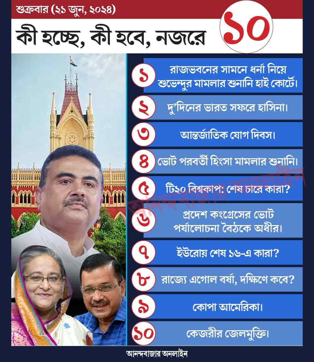 অন্য দিকে, ভোট পরবর্তী ‘হিংসা’য় আক্রান্তদের নিয়ে রাজভবনের সামনে ধর্না দিতে চেয়েছিলেন বিরোধী দলনেতা শুভেন্দু অধিকারী। পুলিশ সেই অনুমতি না-দেওয়ায় কলকাতা হাই কোর্টের দ্বারস্থ হন তিনি। আদালত শুভেন্দুকে বিকল্প জায়গায় কর্মসূচি করতে বলে। আজ রাজভবনের পরিবর্তে কোথায় বিজেপির কর্মসূচি হবে আদালতে তা জানাবেন শুভেন্দু।