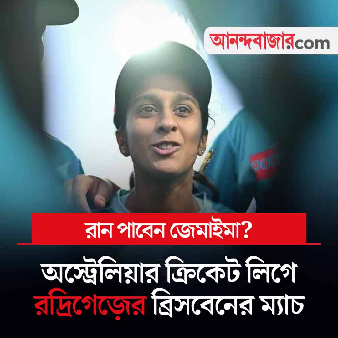 অস্ট্রেলিয়ায় মেয়েদের বিগ ব্যাশ ক্রিকেট লিগে খেলছেন জেমাইমা রদ্রিগেজ়। বিশ্বচ্যাম্পিয়ন হওয়ার পর ভারতীয় দলের একমাত্র জেমাইমাই এখন খেলছেন। তবে বিগ ব্যাশে তাঁর ব্যাটে রান নেই। প্রথম তিনটি ম্যাচে তিনি ৬, ১১ এবং ২০ রান করেছেন। তাঁর দল ব্রিসবেন হিট তিনটি ম্যাচেই হেরেছে। আজ চতুর্থ ম্যাচে জেমাইমাদের সামনে সিডনি থান্ডার। খেলা দুপুর ২:৪০ থেকে। খেলা দেখা যাবে স্টার স্পোর্টস চ্যানেল ও জিয়োহটস্টার অ্যাপে।