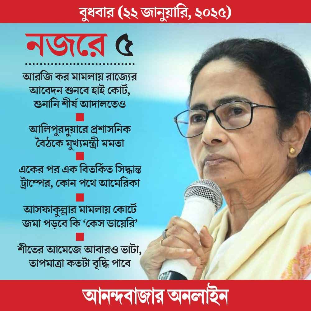 আরজি কর মামলায় আজ রাজ্যের আবেদন শুনবে কলকাতা হাই কোর্ট। আজ সকালে বিচারপতি দেবাংশু বসাকের ডিভিশন বেঞ্চে হবে শুনানি। আরজি করের চিকিৎসক-পড়ুয়ার ধর্ষণ এবং খুনে দোষী সাব্যস্ত সঞ্জয় রায়ের ফাঁসির আবেদন জানিয়ে মঙ্গলবারই হাই কোর্টের দ্বারস্থ হয়েছিল রাজ্য সরকার। অন্য দিকে, আজ আরজি কর মামলা শুনবে সুপ্রিম কোর্টও। দুপুর নাগাদ প্রধান বিচারপতি সঞ্জীব খন্না, বিচারপতি সঞ্জয় কুমার এবং বিচারপতি কেভি বিশ্বনাথনের বেঞ্চে শুনানি। উচ্চ এবং শীর্ষ— দুই আদালতের দিকেই আজ নজর থাকবে।