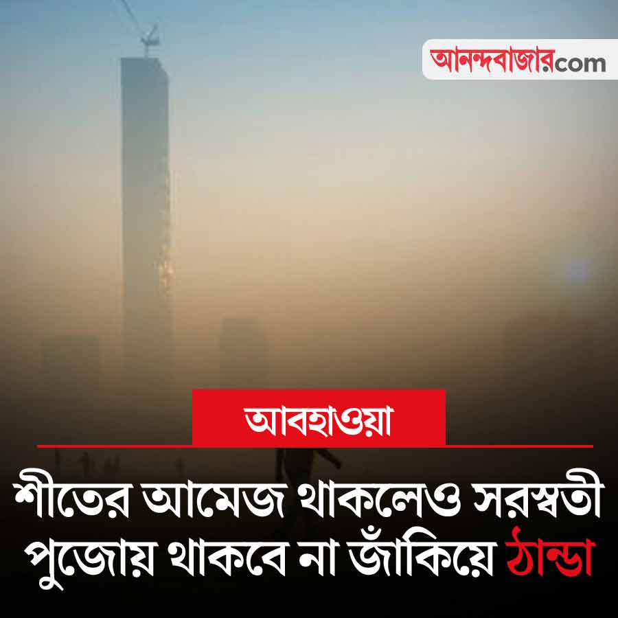 আলিপুর আবহাওয়া দফতর জানিয়েছে, আগামী সাত দিন তাপমাত্রার খুব একটা হেরফের হবে না। সরস্বতী পুজোয় থাকবে উষ্ণতার ছোঁয়া। সরস্বতী পুজোতেও জাঁকিয়ে ঠান্ডা থাকবে না। তবে রাজ্যের প্রায় সব জেলাতেই থাকবে কুয়াশার দাপট। আজ দক্ষিণবঙ্গের সব জেলায় দৃশ্যমানতা নামতে পারে ৯৯৯ থেকে ২০০ মিটারে। উত্তরবঙ্গের জেলাগুলিতে কুয়াশার কারণে দৃশ্যমানতা নামতে পারে।