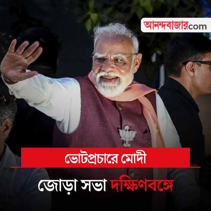 আজও পশ্চিমবঙ্গে ভোটপ্রচার করবেন প্রধানমন্ত্রী নরেন্দ্র মোদী। তাঁর জোড়া জনসভা রয়েছে। একটি পানিহাটিতে এবং অন্যটি বারুইপুরে।