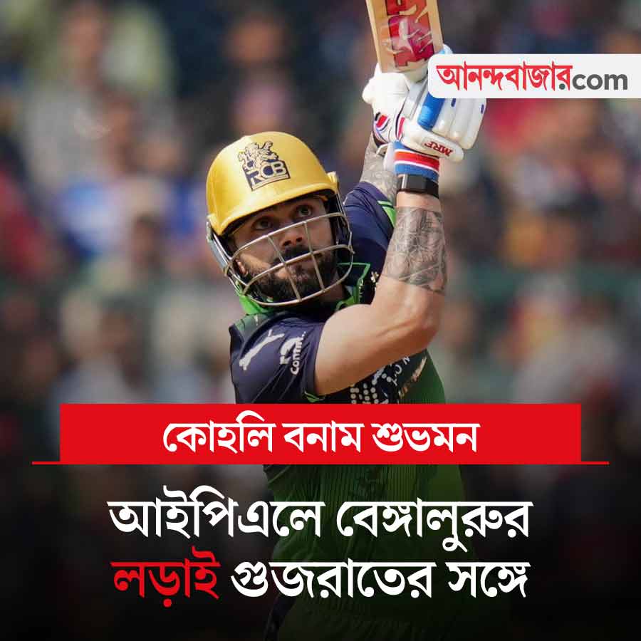 আইপিএলে আজ বিরাট কোহলিদের সঙ্গে শুভমন গিলদের লড়াই। কোহলির রয়্যাল চ্যালেঞ্জার্স বেঙ্গালুরু খেলবে শুভমনের গুজরাত টাইটান্সের সঙ্গে। আজ জিতলে রাজস্থান রয়্যালসকে টপকে বেঙ্গালুরু দ্বিতীয় স্থানে চলে আসবে। গুজরাত জিতলে তারাও পয়েন্ট তালিকায় উপরে উঠবে। বেঙ্গালুরুতে খেলা শুরু সন্ধ্যা ৭:৩০ থেকে। খেলা দেখা যাবে স্টার স্পোর্টস চ্যানেল ও জিয়োহটস্টার অ্যাপে।