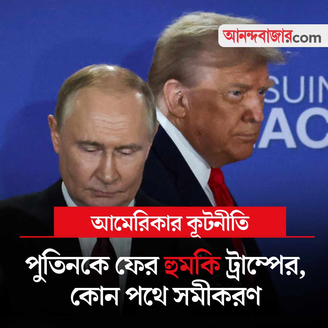 রাশিয়া এবং ইউক্রেনের রাষ্ট্রনেতাদের মুখোমুখি বসাতে চাইছেন আমেরিকার প্রেসিডেন্ট ডোনাল্ড ট্রাম্প। প্রাথমিক ভাবে জানা গিয়েছিল, মস্কো এবং কিভ— উভয়েই আলোচনার টেবিলে বসার জন্য রাজি। কিন্তু কবে বৈঠক হবে, তা নিয়ে এখনও পর্যন্ত কোনও তথ্য প্রকাশ্যে আসেনি। এ অবস্থায় রুশ প্রেসিডেন্ট ভ্লাদিমির পুতিনকে দু’সপ্তাহের সময়সীমা বেঁধে দিয়েছেন ট্রাম্প। হুঁশিয়ারি দিয়েছেন, এই দু’সপ্তাহের মধ্যে শান্তি সমঝোতায় ইতিবাচক অগ্রগতি না-হলে রাশিয়ার উপর নিষেধাজ্ঞা চাপানোর পথে হাঁটতে পারে আমেরিকা। অন্য দিকে, রাশিয়ার সঙ্গে ব্যবসার কারণে ভারতের উপর অতিরিক্ত শুল্ক চাপিয়ে রেখেছেন ট্রাম্প। আগামী ২৭ অগস্ট থেকে তা কার্যকর হওয়ার কথা। এ অবস্থায় আমেরিকার সঙ্গে রাশিয়ার সম্পর্ক কোন পথে এগোয়, নয়াদিল্লির উপর তার কোনও প্রভাব পড়ে কি না, সে দিকে নজর থাকবে আজ।