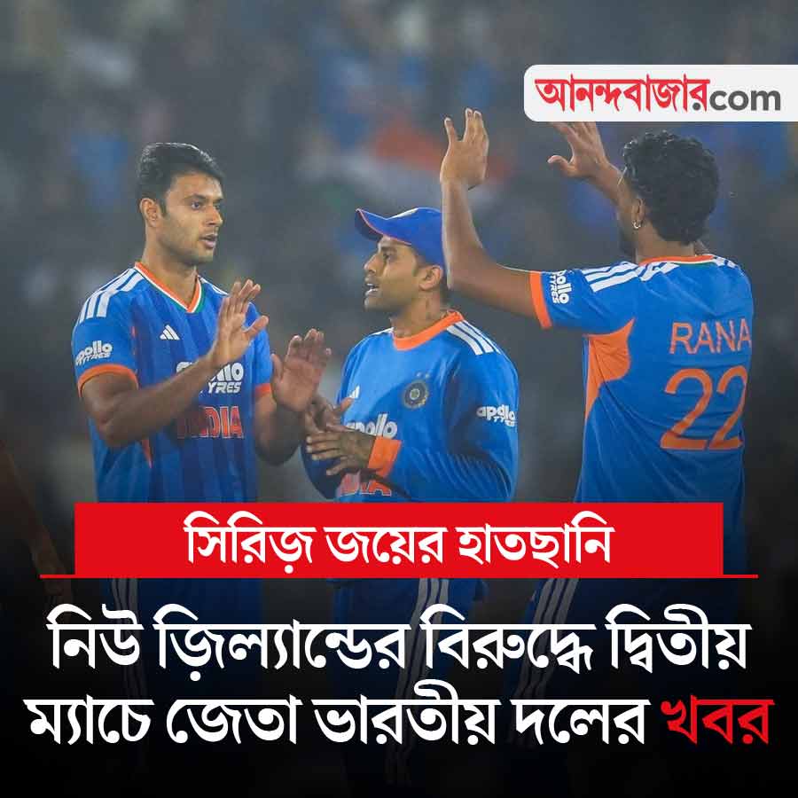 নিউ জ়িল্যান্ডের বিরুদ্ধে পর পর দু’টি ম্যাচ জিতেছে ভারত। সিরিজ়ে ২-০ এগিয়ে সূর্যকুমার যাদবেরা। গত কাল রায়পুরে জয়ের পর আগামী কাল গুয়াহাটিতে তৃতীয় ম্যাচে নামবে ভারত। জিতলেই সিরিজ় পকেটে। থাকছে ভারতীয় দলের সব খবর।