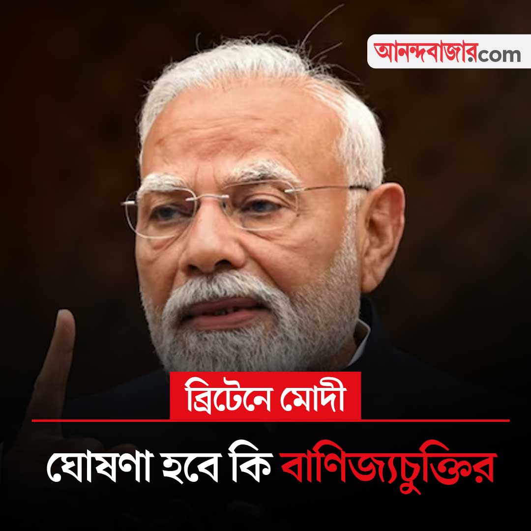 ব্রিটেন সফরে গিয়েছেন প্রধানমন্ত্রী নরেন্দ্র মোদী। দু’দিনের এই সফরে ব্রিটেনের প্রধানমন্ত্রী কিয়ের স্টারমারের সঙ্গে বৈঠক হওয়ার কথা রয়েছে মোদীর। ভারত-ব্রিটেন মুক্ত বাণিজ্যচুক্তিও স্বাক্ষরিত হতে পারে এই সফরকালে। ব্রিটেনের উদ্দেশে রওনা দেওয়ার আগে বুধবার মোদী জানান, অর্থনীতি, উন্নয়ন এবং কর্মসংস্থানে দ্বিপাক্ষিক সহযোগিতার বিষয়ে কথা হবে স্টারমারের সঙ্গে।