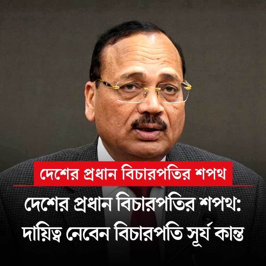 দেশের প্রধান বিচারপতি হিসাবে আজ শপথ নেবেন বিচারপতি সূর্য কান্ত। ২৩ নভেম্বর প্রধান বিচারপতি পদে মেয়াদ শেষ হয়েছে বিচারপতি বিআর গবইয়ের। এ বার দেশের ৫৩তম প্রধান বিচারপতি হিসাবে দায়িত্ব নিচ্ছেন বিচারপতি কান্ত। তিনি এক বছর দু’মাস ওই পদে বহাল থাকবেন। প্রধান বিচারপতি পদে তাঁর মেয়াদ শেষ হবে ২০২৭ সালের ৯ ফেব্রুয়ারি।