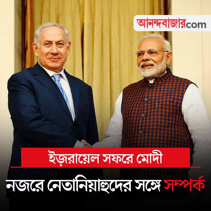 পশ্চিম এশিয়ায় উত্তেজনার মাঝেই আজ ইজ়রায়েলে যাচ্ছেন প্রধানমন্ত্রী নরেন্দ্র মোদী। দু’দিনের এই সফরে বেঞ্জামিন নেতানিয়াহুদের সঙ্গে সম্পর্ক আরও মজবুত করার লক্ষ্যে বেশ কিছু আলোচনা হবে। বিদেশ মন্ত্রক সূত্রে খবর, কৌশলগত সম্পর্ক, প্রতিরক্ষা, কৃষি ও সন্ত্রাস মোকাবিলায় কিছু সমঝোতা স্মারক (মউ) সই হবে প্রধানমন্ত্রীর এই সফরে। এর মধ্যে রয়েছে প্রায় ৬৮০ কোটি ইউরোর (প্রায় ৭২ হাজার ৮১৪ কোটি টাকা) অস্ত্র ক্রয় ও যৌথ উদ্যোগে নির্মাণ সংক্রান্ত সমঝোতাও। কিছু দিন আগেই ওয়েস্ট ব্যাঙ্ক নিয়ে ইজ়রায়েলের একক পদক্ষেপের নিন্দা জানিয়ে যৌথ বিবৃতি দিয়েছিল শতাধিক দেশ। মূল বিবৃতিতে না-থাকলেও পরে ওই বিবৃতির সঙ্গে জুড়েছিল ভারতও। এ অবস্থায় প্রধানমন্ত্রীর ইজ়রায়েল সফরে কী কী বিষয় উঠে আসে, সে দিকে নজর থাকবে আজ।