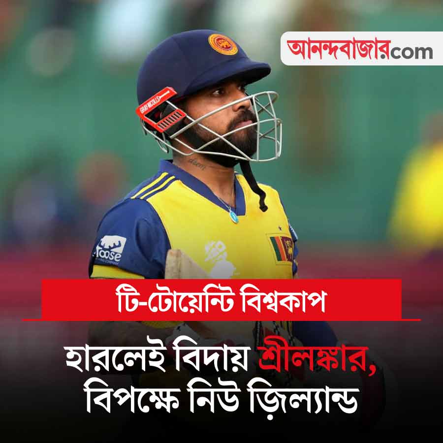 টি-টোয়েন্টি বিশ্বকাপের সুপার এইটে আজ শ্রীলঙ্কা বনাম নিউ জ়িল্যান্ড ম্যাচ। এই ম্যাচে হারলেই এ বারের মতো বিশ্বকাপ থেকে বিদায় নেবে শ্রীলঙ্কা। প্রথম ম্যাচে ইংল্যান্ডের কাছে হেরে সমস্যায় অন্যতম আয়োজক দেশ। নিউ জ়িল্যান্ডের প্রথম ম্যাচ ছিল পাকিস্তানের বিপক্ষে। বৃষ্টিতে সেই ম্যাচ ভেস্তে গিয়েছে। আজ কলম্বোয় খেলা সন্ধ্যা ৭টা থেকে। খেলা দেখা যাবে স্টার স্পোর্টস চ্যানেল ও জিয়োহটস্টার অ্যাপে।