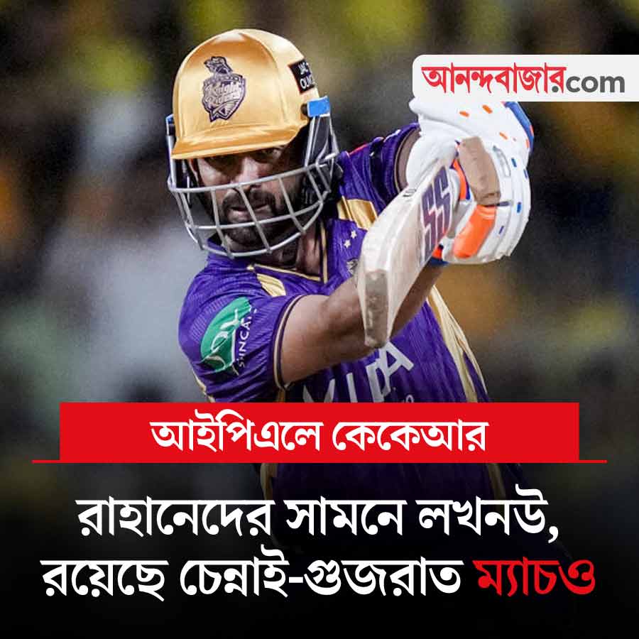 আইপিএলে আজও জোড়া ম্যাচ। এক সপ্তাহ পর আবার নামছে কলকাতা নাইট রাইডার্স। বিপক্ষে লখনউ সুপার জায়ান্টস। এটি কেকেআরের অ্যাওয়ে ম্যাচ। প্রথম ছ’টি ম্যাচের একটিতেও জিততে না পারা কেকেআর সপ্তম ম্যাচে জিতেছিল। আজ অজিঙ্ক রাহানেরা কি ঋষভ পন্থের লখনউকে হারাতে পারবে? শেষ চারটি ম্যাচ হেরে অনেকটাই পিছিয়ে পড়েছে লখনউ। এই ম্যাচ সন্ধ্যা ৭:৩০ থেকে। তার আগে রয়েছে চেন্নাই সুপার কিংস এবং গুজরাত টাইটান্স ম্যাচ। চেন্নাই শেষ চারটি ম্যাচের তিনটি জিতে অনেকটাই উপরে উঠেছে। অন্য দিকে শুভমন গিলের গুজরাত শেষ দু’টি ম্যাচ হেরে গিয়েছে। তারাও লখনউয়ের মতো পিছিয়ে পড়েছে। এই ম্যাচ বিকেল ৩:৩০ থেকে। খেলা দেখা যাবে স্টার স্পোর্টস চ্যানেল ও জিয়োহটস্টার অ্যাপে।