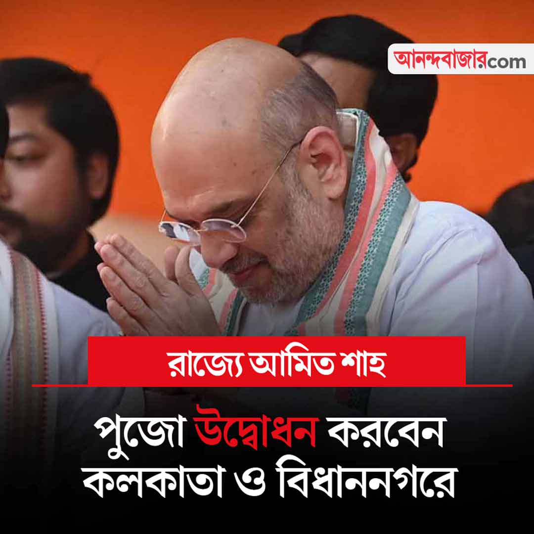 আজ কলকাতা এবং বিধাননগরে দুর্গাপুজো উদ্বোধন করবেন কেন্দ্রীয় স্বরাষ্ট্রমন্ত্রী অমিত শাহ। পুজো দেবেন কালীঘাট মন্দিরেও। সকাল ১১টা নাগাদ সন্তোষ মিত্র স্কোয়্যারে পৌঁছবেন কেন্দ্রীয় স্বরাষ্ট্র মন্ত্রী। সেখানে ফিতে কাটার পরে প্রতিমার উদ্দেশে পুষ্পার্ঘ্য নিবেদন করবেন এবং প্রদীপ জ্বালাবেন। তার পরে যাবেন অনুষ্ঠান মঞ্চে। সেখানে উত্তরীয় এবং স্মারক দিয়ে তাঁকে সংবর্ধনা জানানো হবে। সংক্ষিপ্ত ভাষণে শাহকে স্বাগত জানাবেন পুজো কমিটির সভাপতি। এই পুরো প্রক্রিয়া শেষ করা হবে ১০ মিনিটের মধ্যে। তার পরেই শাহের হাতে মাইক তুলে দেওয়া হবে। মোট ১৫-২০ মিনিট সন্তোষ মিত্র স্কোয়্যারে কাটিয়ে সকাল সাড়ে ১১টা নাগাদ শাহ পৌঁছবেন কালীঘাট মন্দিরে। সেখানেও মিনিট কুড়ির কর্মসূচি। পুজো দিয়ে সরাসরি রওনা দেবেন বিধাননগরের উদ্দেশে। ইজ়েডসিসিতে পৌঁছবেন বেলা ১২টা ৫ মিনিটে। সেখানেও কর্মসূচি প্রায় সন্তোষ মিত্র স্কোয়্যারের মতোই। শুধু সে সবের মাঝে পাঁচ মিনিটের একটি নৃত্যানুষ্ঠান থাকবে। আর ভাষণ দিতে চাইলে শুধু শাহই দেবেন, অন্য কেউ নন। ইজ়েডসিসির পুজোর উদ্বোধন সেরে সাড়ে ১২টার মধ্যে শাহ রওনা দেবেন কলকাতা বিমানবন্দরের উদ্দেশে।