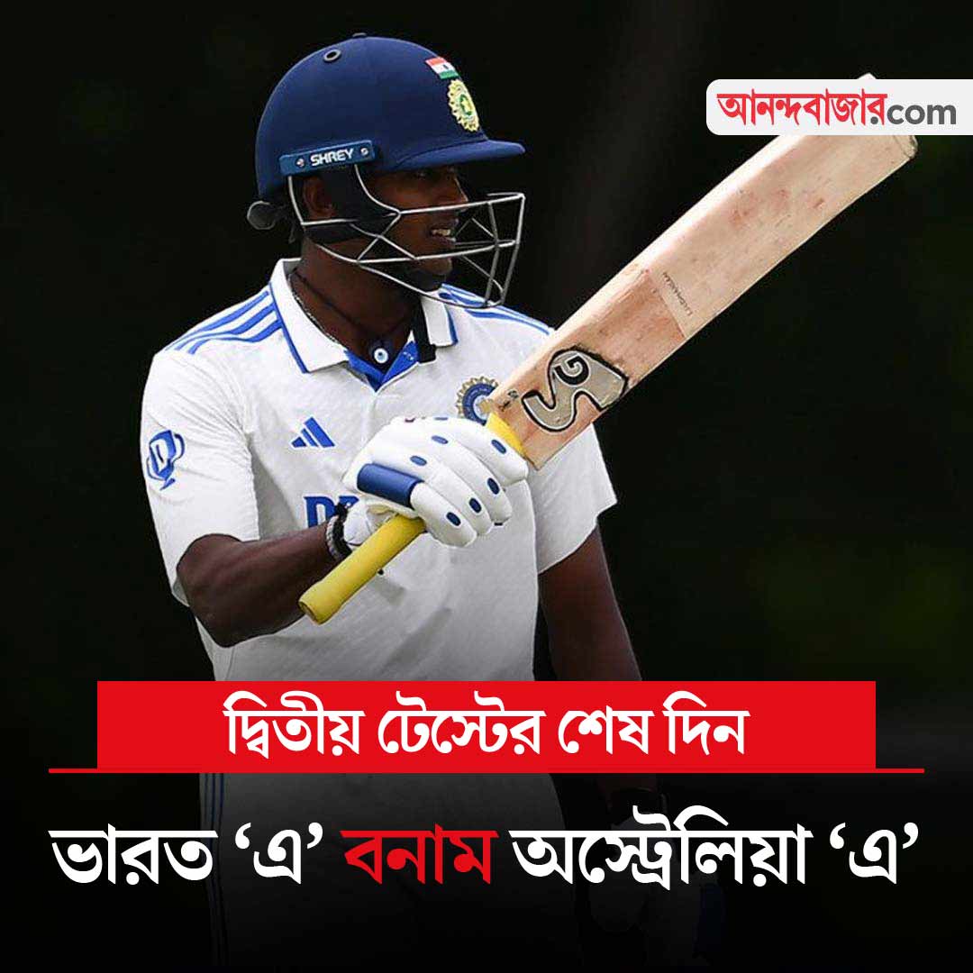 সামনেই ওয়েস্ট ইন্ডিজ়ের বিরুদ্ধে টেস্ট সিরিজ়। সেই সিরিজ়ের দলও ঘোষণা করা হয়ে গিয়েছে। ওয়েস্ট ইন্ডিজ় সিরিজ়ের আগে অস্ট্রেলিয়া ‘এ’ দলের বিরুদ্ধে টেস্ট সিরিজ় খেলছে ভারত ‘এ’। প্রথম টেস্ট ড্র হয়েছে। আজ দ্বিতীয় টেস্টের শেষ দিন। ভারতের জিততে দরকার আরও ২৪৩ রান। জিততে পারবেন লোকেশ রাহুল, ধ্রুব জুরেলরা। খেলা শুরু সকাল ৯.৩০ মিনিটে।