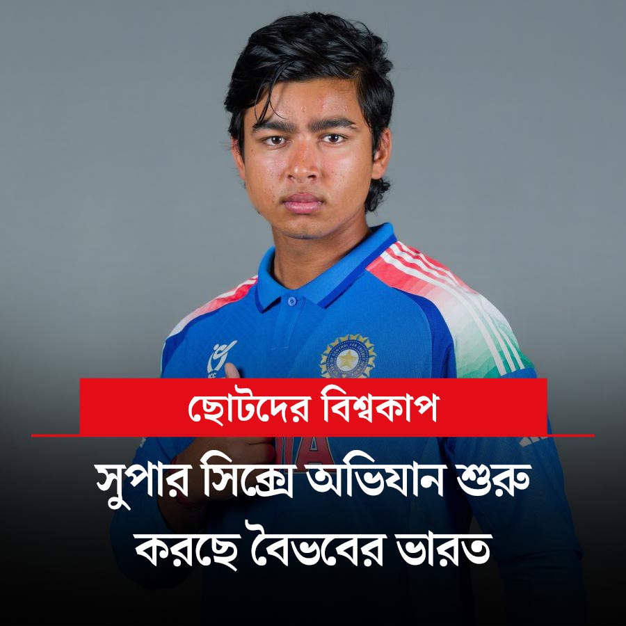 অনূর্ধ্ব ১৯ বিশ্বকাপ ক্রিকেটে আজ সুপার সিক্স পর্বে অভিযান শুরু করছে ভারত। বৈভব সূর্যবংশী-আয়ুশ মাত্রের ভারতের সামনে জিম্বাবোয়ে। খেলা দুপুর ১টা থেকে। আজ রয়েছে পাকিস্তানেরও সুপার সিক্স পর্বের প্রথম ম্যাচ। বিপক্ষে নিউ জ়িল্যান্ড। এই ম্যাচও দুপুর ১টা থেকে। খেলা দেখা যাবে স্টার স্পোর্টস চ্যানেল ও জিয়োহটস্টার অ্যাপে।