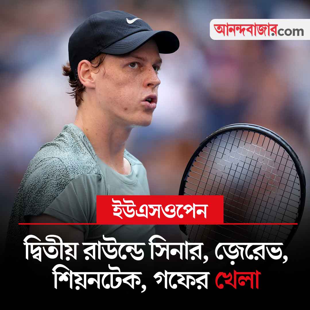 ইউএস ওপেনে আজ দ্বিতীয় রাউন্ডের ম্যাচে নামছেন জানিক সিনার। শীর্ষ বাছাই সিনারের সামনে অবাছাই আলেক্সি পপিরিন। রয়েছে তৃতীয় বাছাই আলেকজান্ডার জ়েরেভের খেলাও। তাঁকেও খেলতে হবে অবাছাই খেলোয়াড়ের বিরুদ্ধে। বিপক্ষে জেকব ফার্নলি। মহিলাদের সিঙ্গলসে দ্বিতীয় বাছাই ইগা শিয়নটেক খেলবেন সুজ়ান লামেন্সের সঙ্গে। তৃতীয় বাছাই কোকো গফের বিপক্ষে ডোনা ভেকিচ। খেলা শুরু রাত ৮:৩০ থেকে। দেখা যাবে স্টার স্পোর্টস চ্যানেল ও জিয়োহটস্টার অ্যাপে।