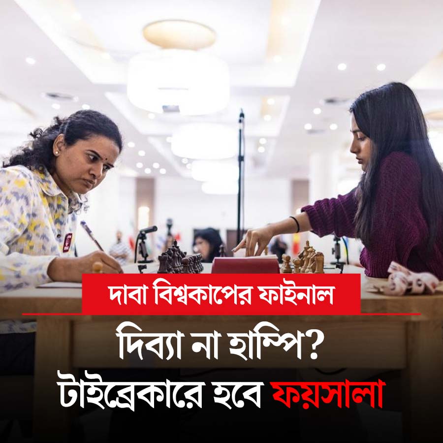 দিব্যা দেশমুখ না কোনেরু হাম্পি? ইতিহাস রচনা করবেন কে? ১৯ বছরের দিব্যা ও ৩৮ বছরের হাম্পি দুটো ক্লাসিক্যাল গেমই ড্র করেছেন। ফলে খেলা গড়িয়েছে টাইব্রেকারে। আজ টাইব্রেকারে ফয়সালা হবে যে ভারতের প্রথম মহিলা দাবাড়ু হিসাবে বিশ্বচ্যাম্পিয়ন কে হবেন? খেলা শুরু বিকেল ৪:৩০ থেকে।