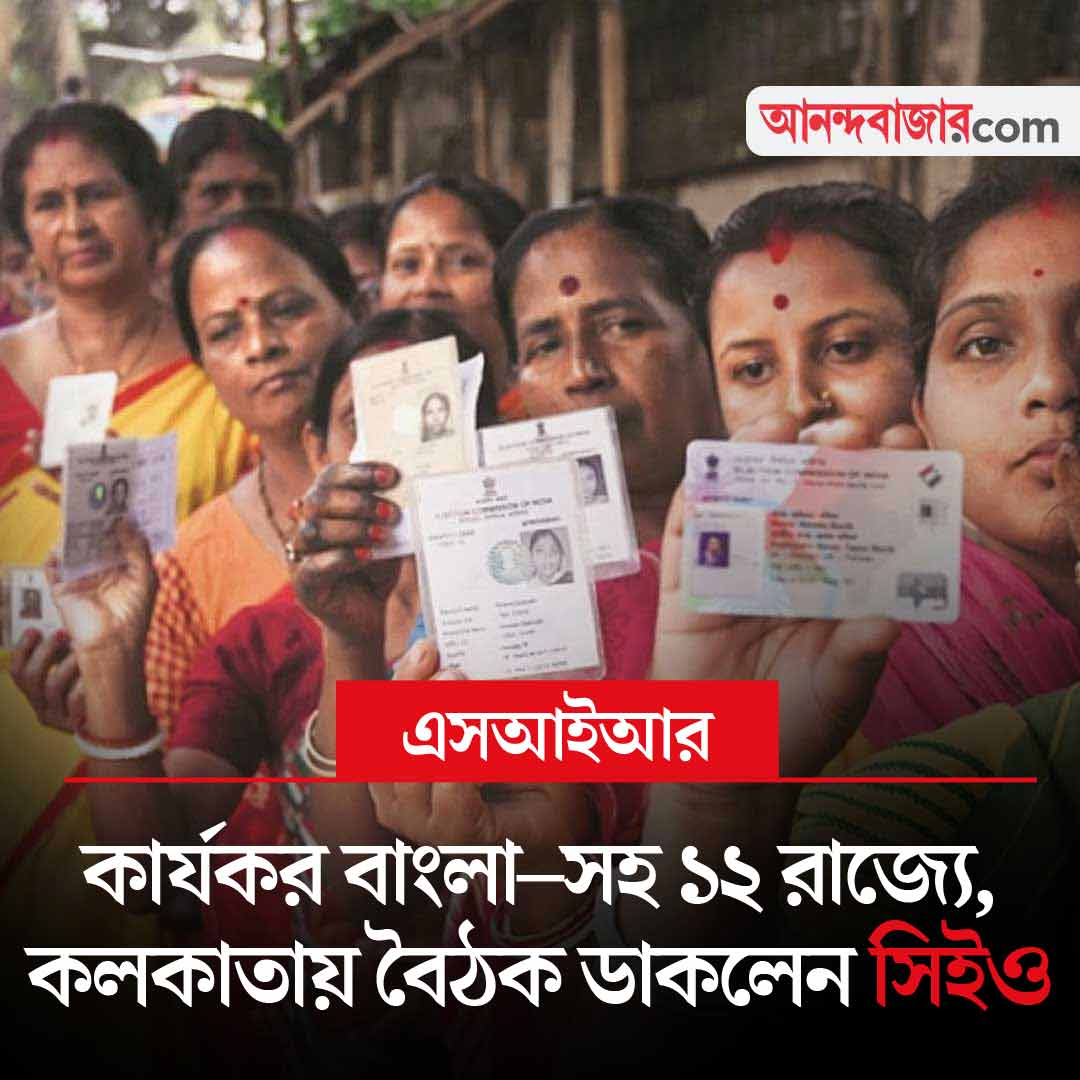 মঙ্গলবার থেকে পশ্চিমবঙ্গে শুরু হচ্ছে এসআইআর। সোমবার রাত ১২টার পরেই ‘ফ্রিজ়’ হচ্ছে ভোটারতালিকা। মঙ্গলবার সন্ধ্যা ৬টায় সাংবাদিক বৈঠক ডেকেছেন রাজ্যের মুখ্য নির্বাচনী আধিকারিক। সিইও দফতর সূত্রে খবর, মঙ্গলবার বিকেল ৪টেয় সর্বদলীয় বৈঠক হবে।