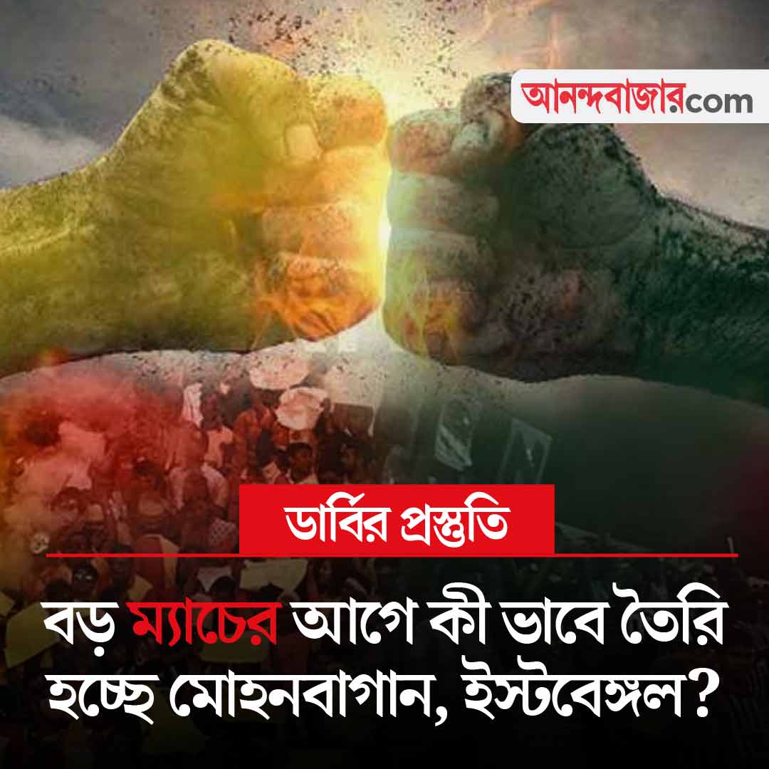 কাল গোয়ায় কলকাতা ডার্বি। সুপার কাপে মুখোমুখি ইস্টবেঙ্গল ও মোহনবাগান। মঙ্গলবার ইস্টবেঙ্গল জেতায় এবং মোহনবাগান ড্র করায় জমে গিয়েছে এই ম্যাচ। শুক্রবার যারা হারবে, তারাই বিদায় নেবে। শুধু তাই নয়, যারা জিতবে তাদের সেমিফাইনালে যাওয়া নির্ভর করবে ডেম্পো-চেন্নাইয়িন ম্যাচের ফলের উপর। মরণ-বাঁচন ম্যাচের আগে কী ভাবে তৈরি হচ্ছে দুই দল?