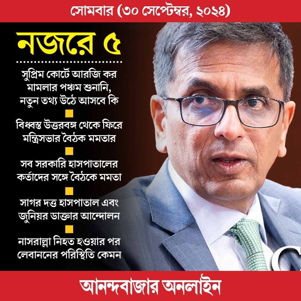 ১৩ দিন পর সুপ্রিম কোর্টে আজ আবার হতে চলেছে আরজি কর মামলার শুনানি। প্রধান বিচারপতি ডিওয়াই চন্দ্রচূড়, বিচারপতি জেবি পারদিওয়ালা এবং বিচারপতি মনোজ মিশ্রের বেঞ্চেই শুনানি শুরু হওয়ার কথা দুপুর ২টোয়। এর আগে চার বার হয়েছে আরজি কর নিয়ে শুনানি। শেষ শুনানি হয়েছিল ১৭ সেপ্টেম্বর। ওই দিন সিবিআই এবং রাজ্য সরকারকে বেশ কয়েকটি নির্দেশ দিয়েছিল শীর্ষ আদালত।