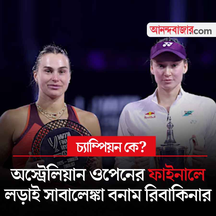 অস্ট্রেলিয়ান ওপেনে মেয়েদের সিঙ্গলসের ফাইনাল আজ। লড়াই শীর্ষ বাছাই এবং বিশ্বের এক নম্বর আরিনা সাবালেঙ্কা এবং পঞ্চম বাছাই ও এই মুহূর্তে বিশ্বের তিন নম্বর এলিনা রিবাকিনার। ২০২৩ এবং ২০২৪ সালে অস্ট্রেলিয়ান ওপেন জিতেছেন সাবালেঙ্কা। রিবাকিনা ২০২৩-এর ফাইনালে হেরেছিলেন সাবালেঙ্কার কাছে। আজ কি তিন বছর আগের বদলা নিতে পারবেন তিনি? না কি তৃতীয় বার চ্যাম্পিয়ন হবেন সাবালেঙ্কা? খেলা শুরু দুপুর ২টো থেকে। খেলা দেখা যাবে সোনি স্পোর্টস চ্যানেল ও সোনি লিভ অ্যাপে।