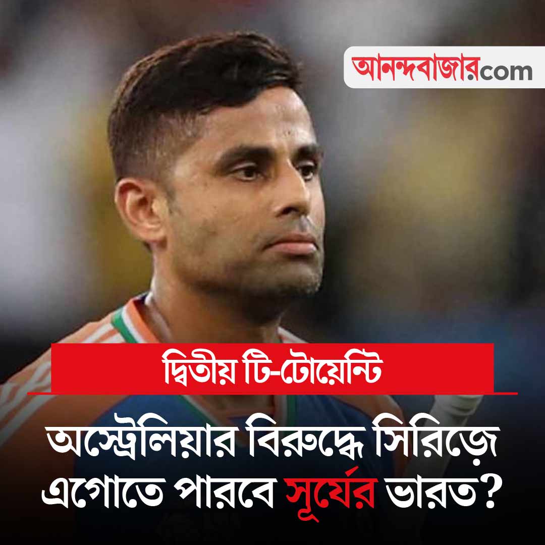 ভারত-অস্ট্রেলিয়া পাঁচ ম্যাচের টি-টোয়েন্টি সিরিজ়ে আজ দ্বিতীয় ম্যাচ। ক্যানবেরায় প্রথম ম্যাচ বৃষ্টিতে ভেস্তে গিয়েছে। মেলবোর্নে দ্বিতীয় ম্যাচে কী হবে? ভারতের কাছে প্রথম ম্যাচের ইতিবাচক দিক হল অধিনায়ক সূর্যকুমার যাদবের রানে ফেরা। সূর্যের ভারতের সঙ্গে মিচেল মার্শের অস্ট্রেলিয়ার লড়াই দুপুর ১:৪৫ থেকে। খেলা দেখা যাবে স্টার স্পোর্টস চ্যানেল ও জিয়োহটস্টার অ্যাপে।