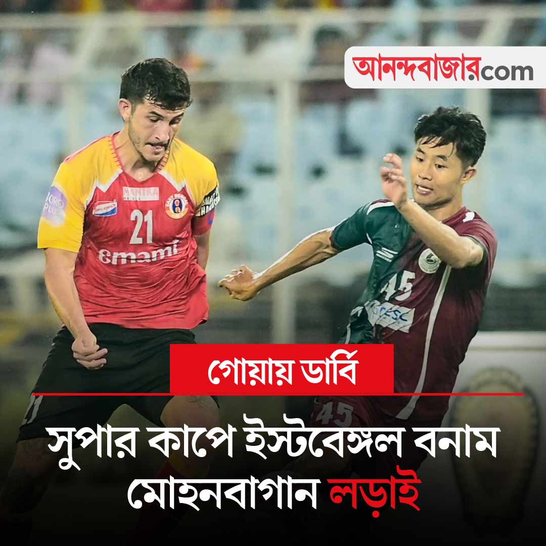 গোয়ায় সুপার কাপে আজ কলকাতা ডার্বি। গ্রুপের শেষ ম্যাচে মুখোমুখি ইস্টবেঙ্গল ও মোহনবাগান। এই ম্যাচ কার্যত কোয়ার্টার ফাইনাল। যারা জিতবে তারা সেমিফাইনালে চলে যাবে। তার আগে গুরুত্বপূর্ণ ডেম্পো বনাম চেন্নাইয়িন ম্যাচও। এই ম্যাচের উপরেও অনেক কিছু নির্ভর করছে। ডেম্পো-চেন্নাইয়িন ম্যাচ বিকেল ৪:৩০ থেকে। ডার্বি সন্ধ্যা ৭:৩০ থেকে। খেলা দেখা যাবে ইন্ডিয়ান ফুটবল ইউটিউব চ্যানেল, স্টার স্পোর্টস চ্যানেল ও জিয়ো হটস্টার অ্যাপে।