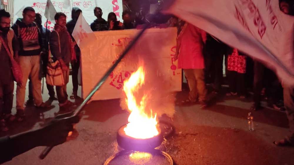 • চন্দ্রকোণা রোডে বিক্ষোভ।