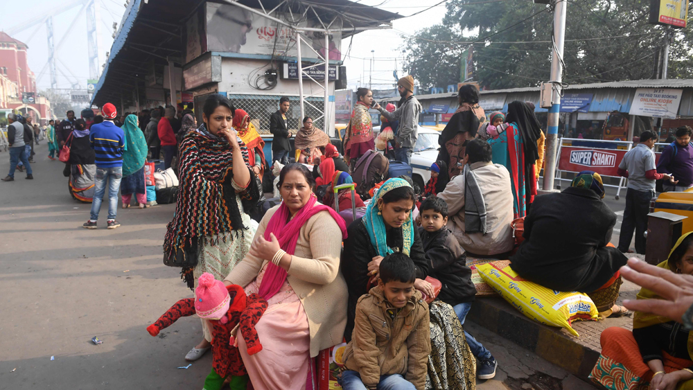 বন্ধের জেরে আটকে পড়লেন যাত্রীরা। হাওড়া স্টেশনের বাইরে তোলা নিজস্ব চিত্র।