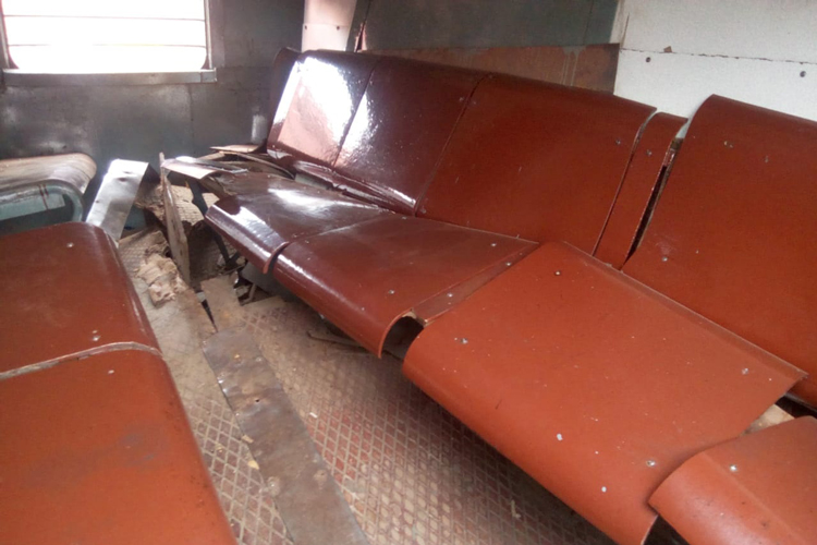 ভেঙে গিয়েছে ট্রেনের সিটগুলিও। ছবি: নিজস্ব চিত্র।