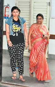 এসএসকেএম হাসপাতালের বাইরে মদন মিত্রের স্ত্রী এবং পুত্রবধূ। ছবি: সুমন বল্লভ।
