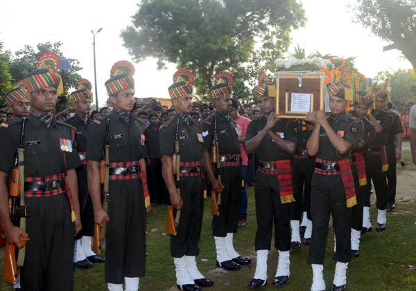 উরির সেনা ছাউনিতে জঙ্গি হানায় নিহত সেনা জওয়ান গঙ্গাধর দলুইয়ের (২২) কফিনবন্দি দেহ নিয়ে আসা হল তাঁর হাওড়ার বাড়িতে। মঙ্গলবার ভোর সাড়ে পাঁচটা নাগাদ হাওড়ার জগৎবল্লভপুরের যমুনা বালিয়া গ্রামে নিয়ে আসা হয় গঙ্গাধরের মরদেহ। গঙ্গাধর বিহার রেজিমেন্টে ছিলেন। এ দিন বিহার রেজিমেন্টের জওয়ানরাই তাঁর মরদেহ বাড়িতে নিয়ে আসেন। তাঁদের তত্ত্বাবধানেই শেষকৃত্য সম্পন্ন হয় গঙ্গাধরের।