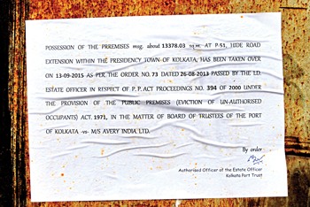 রবিবার সকালে পি-৫১-র দরজায় পোর্ট ট্রাস্টের তরফে সেঁটে দেওয়া সেই নোটিস।