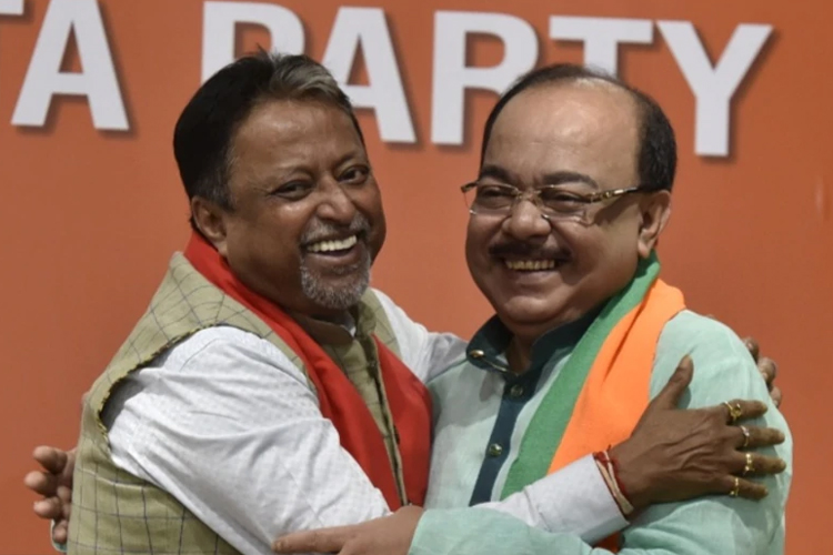 বিজেপিতে যোগদানের দিন মুকুল রায়ের সঙ্গে শোভন চট্টোপাধ্যায়। —ফাইল চিত্র।