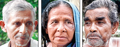 (বাঁ দিকে) জমি হারানো অনিচ্ছুক চাষি প্রভাত শী। (মাঝখানে) জমি আন্দোলনে অগ্রণী
