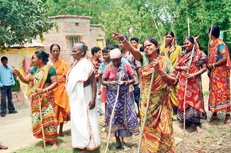 ক্ষীরপাইয়ে তৃণমূল বাহিনীকে রুখে দিলেন সিপিএমের প্রমীলা বাহিনী। ছবি: সৌমেশ্বর মণ্ডল।