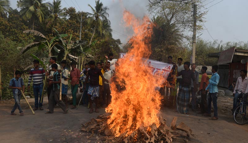 পাওয়ার গ্রিডের বিরুদ্ধে আন্দোলনের জেরে এ ভাবে আগুন জ্বলেছিল ভাঙড়ের যত্রতত্র। মুখ্যমন্ত্রী এ দিন বলেছেন, গোটা বিক্ষোভটাই ছিল অপপ্রচারের ফসল। —ফাইল চিত্র।