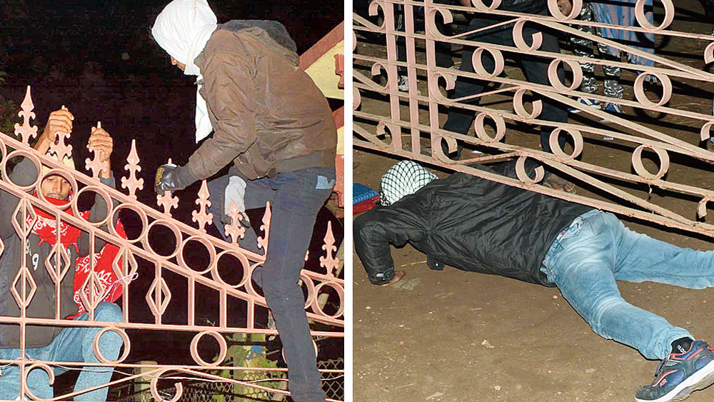 শনিবার রাতে গেটের ফাঁক গলে , টপকে মাঠে ঢোকার চেষ্টা । ছবি: বিশ্বজিৎ রায়চৌধুরী