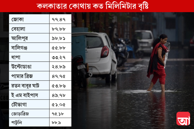 একটানা প্রবল বৃষ্টিতে উত্তর কলকাতার কাশীপুর, সুকিয়া স্ট্রিট, ঠনঠনিয়া, আমহার্স্ট স্ট্রিটের রাজা রামমোহন রায় সরণী, সেন্ট্রাল এভিনিউ, মহাত্মা গাঁধী রোডের বেশ কিছু অংশে জল জমে যায়। জল জমে যায় দক্ষিণ কলকাতার বালিগঞ্জ, আলিপুর, ঢাকুরিয়া, বেহালার জোকা, সখের বাজার, পর্ণশ্রী-সহ কয়েকটি জায়গায়। হাওড়ার রামরাজাতলা, সালকিয়া, বাঁধাঘাট, পঞ্চাননতলা-সহ বেশ কয়েকটি জায়গা টানা বৃষ্টিতে জলমগ্ন হয়ে পড়েছে।