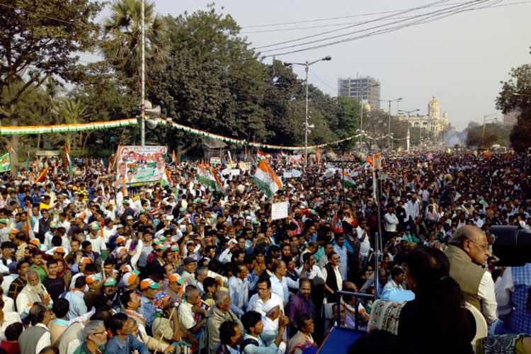 রানি রাসমণি অ্যাভিনিউতে ১২ ডিসেম্বর যে জনসভা হবে, তা প্রদেশ কংগ্রেস অনেক আগেই ঘোষণা করেছিল। মধ্যপ্রদেশ, রাজস্থান, ছত্তীসগঢ়ে কংগ্রেসের জয়ের প্রেক্ষিতে এই সমাবেশ ছিল, তা নয়। বরং প্রদেশ সভাপতি পদে রদবদলের পরে দলের অন্দরে পরিস্থিতি যে ভাবে টালমাটাল হয়েছিল, তা কাটিয়ে উঠে মোটের উপর একটা ঐক্যের ছবি তুলে ধরাই অঘোষিত ভাবে অন্যতম লক্ষ্য ছিল। সে লক্ষ্যে সোমেন মিত্র সফল। কংগ্রেসের ডাকে শেষ কবে ধর্মতলার এই সভাস্থল এমন কানায় কানায় ভরেছে, তা অনেকেই মনে করতে পারছেন না। সোমেন মিত্র, অধীর চৌধুরী, প্রদীপ ভট্টাচার্য, আবদুল মান্নান, দীপা দাশমুন্সি, আবু হাসেম খান চৌধুরী, শঙ্কর মালাকার, শুভঙ্কর সরকার, অমিতাভ চক্রবর্তী, সন্তোষ পাঠক-সহ প্রদেশ কংগ্রেসের সব শীর্ষ পদাধিকারী তো ছিলেনই, ছিলেন সাংসদ মৌসন নূর, ছিলেন দলের সিংহভাগ বিধায়ক।