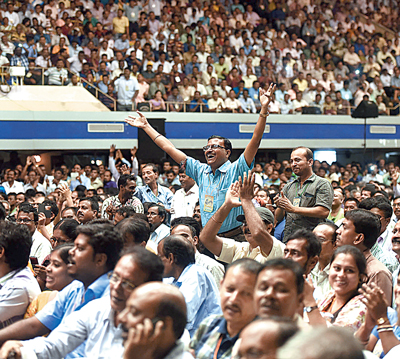 ভোটের আগে মুখ্যমন্ত্রীর এই ঘোষণা শুনে নেতাজি ইন্ডোর স্টেডিয়াম-ফেরত শাসক দলের কর্মী সংগঠনের বহু সমর্থককে বলতে শোনা যায়, ‘‘অনেক আশা নিয়ে এসেছিলাম। ভেবেছিলাম, পুজোর আগে অন্তত এক কিস্তি ডিএ পাবো। কিন্তু কোথায় কী!’’ কেউ কেউ বলেন, ‘‘দিল্লি কা লাড্ডু ধরিয়ে দিলেন মুখ্যমন্ত্রী।’’ তাঁদের বক্তব্য, এই ঘোষণাটা প্রতি বার জানুয়ারিতে হয়। এ বার প্রায় চার মাস আগে করা হল। পার্থক্য বলতে এইটুকুই। মুখ্যমন্ত্রীর ঘোষণার আগেই এ দিন অনুষ্ঠান মঞ্চে দাঁড়িয়ে কোনও রকম রাখঢাক না-করে সরাসরি ডিএ-র দাবি তোলেন তৃণমূলের কর্মী ফেডারেশনের নেতা তপন ঘড়াই। মুখ্যমন্ত্রী তখনও স্টেডিয়ামে ডোকেননি। তপনবাবুর ওই কথা শুনে হাততালির ঝড় বয়ে যাওয়ায় অস্বস্তিতে পড়ে যান শিক্ষামন্ত্রী, পঞ্চায়েত মন্ত্রীরা। তপনবাবু মঞ্চ থেকে নামার পরে তাঁকে মঞ্চের পিছনে নিয়ে গিয়ে শিক্ষামন্ত্রী উত্তেজিত ভাবে কিছু বলতে থাকেন।